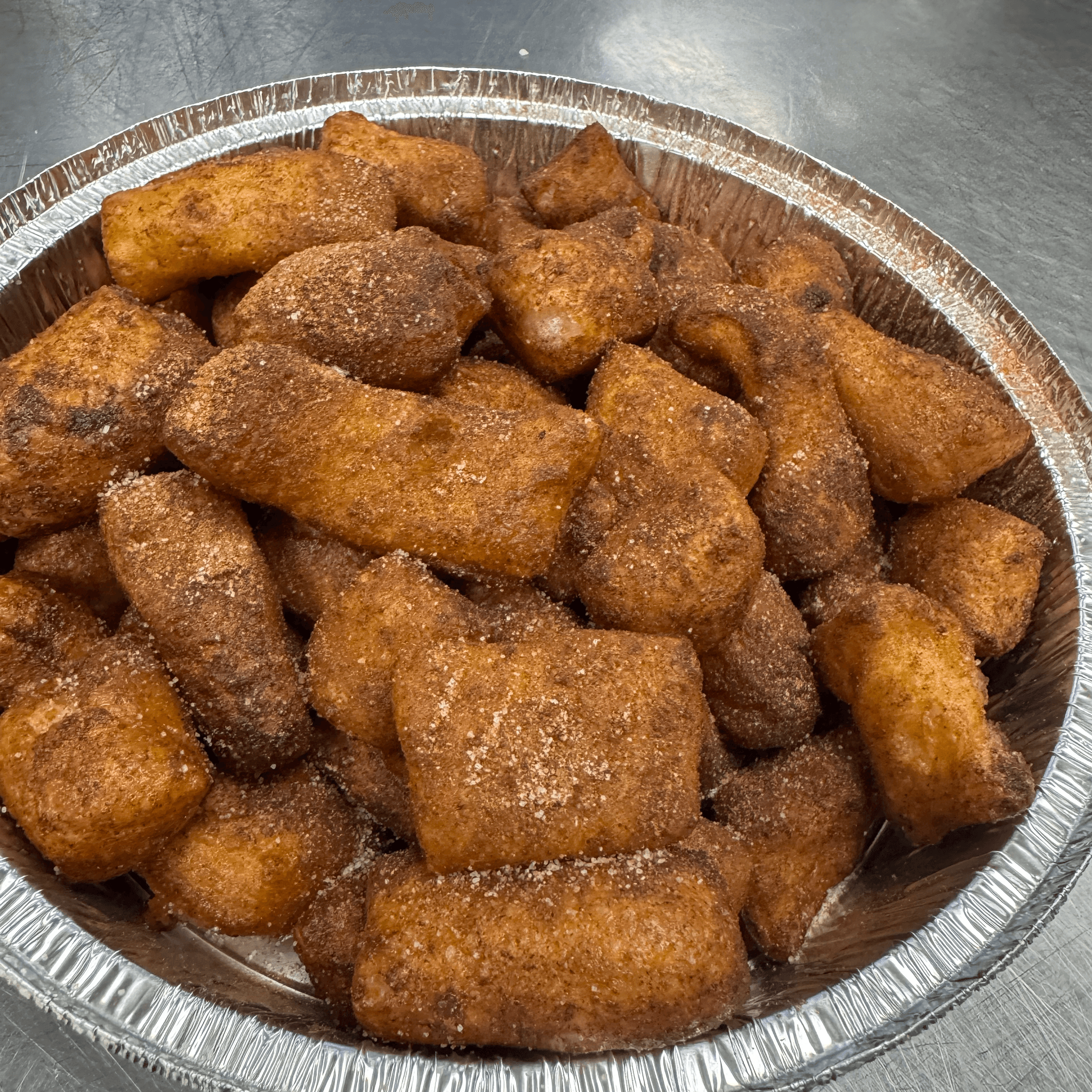 Our best homemade fried dough with white sugar and dipping