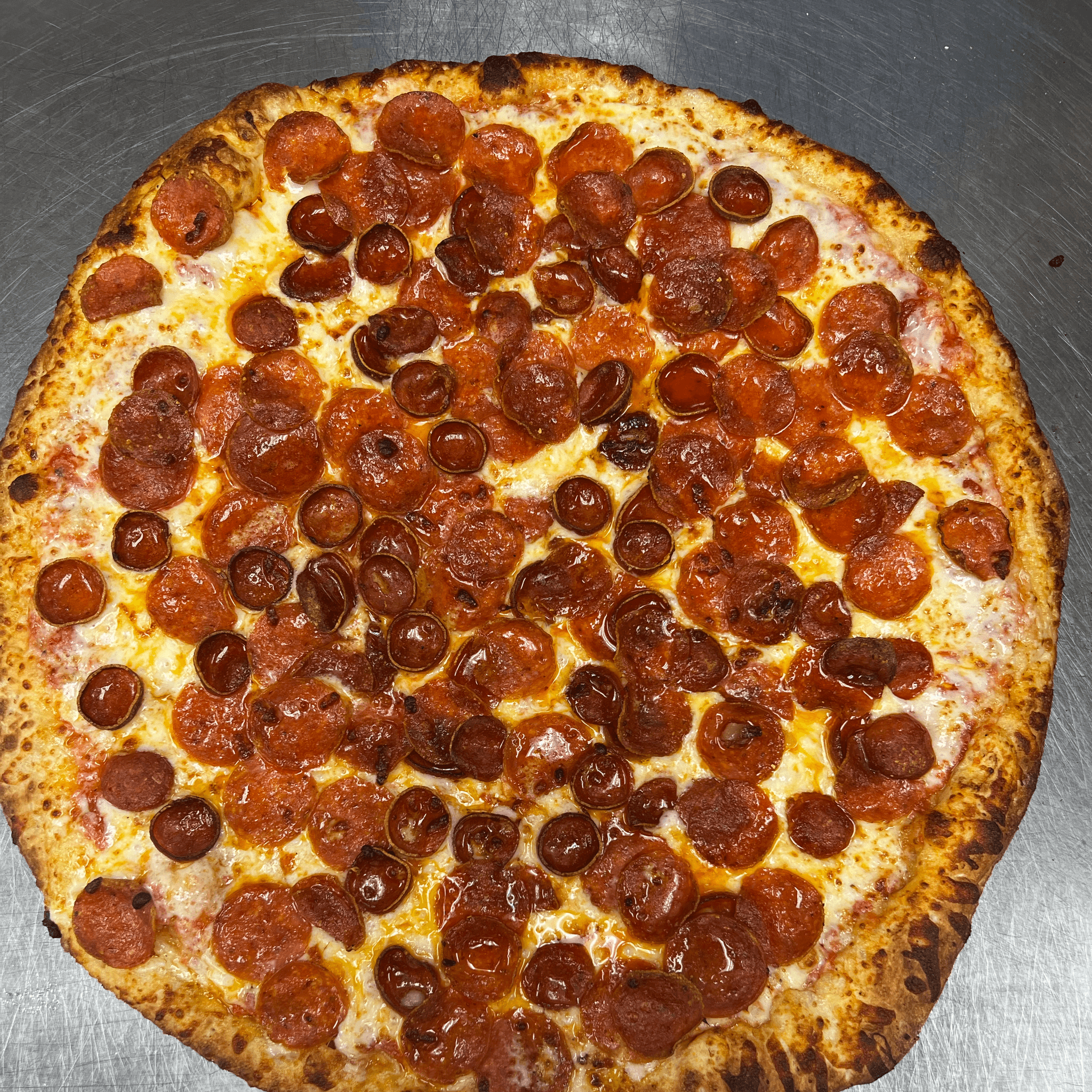 Extra pepperoni, pizza sauce, and mozzarella cheese