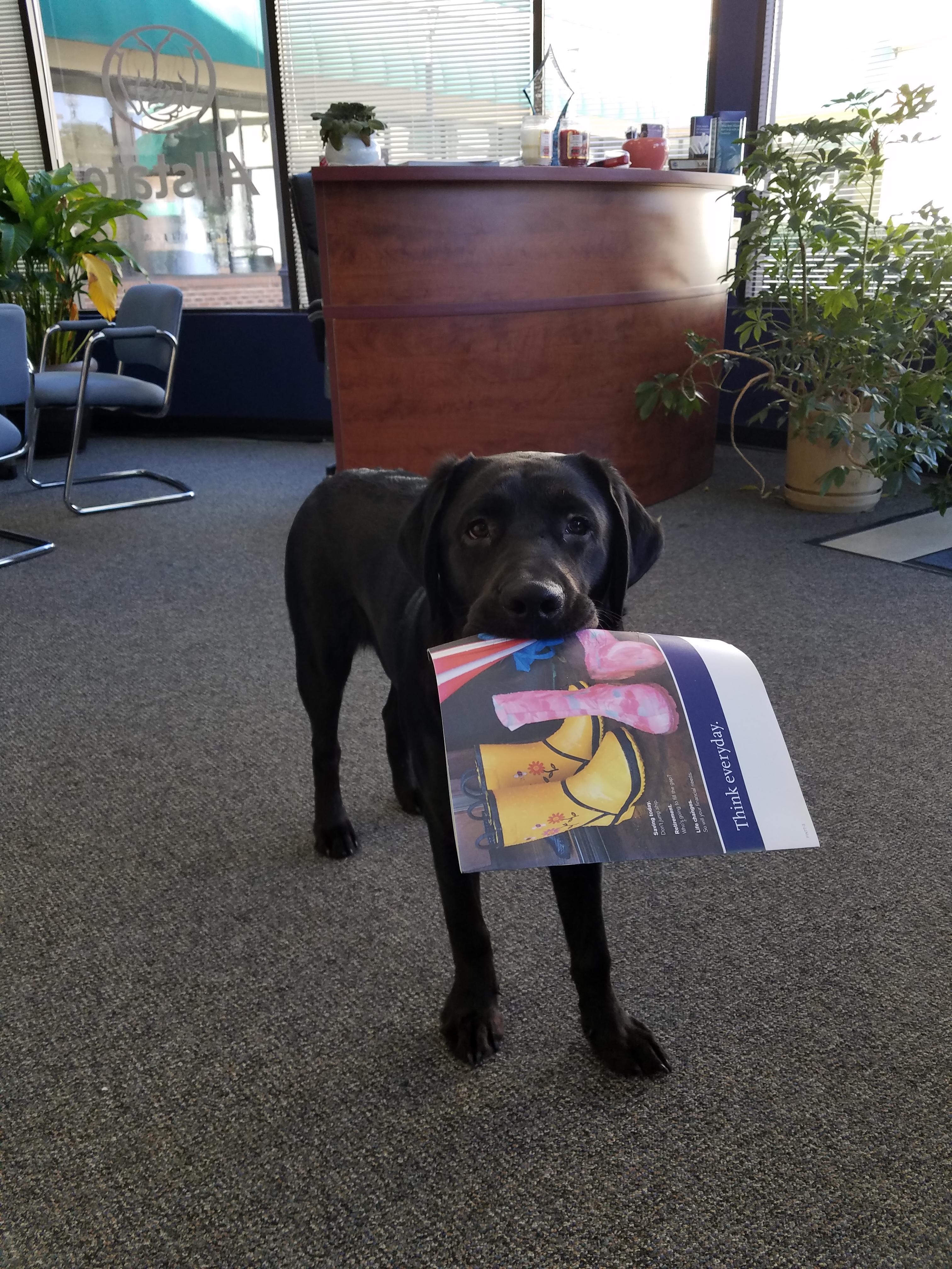 Buster is Frankie's precious black lab puppy. He visits us in the office from time to time and loves greeting the customers and passing out life insurance brochures.